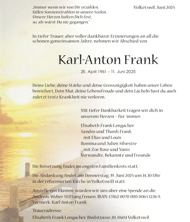 In stiller Trauer müssen wir euch über den Tod von Karl-Anton (Carl) Frank informiern.